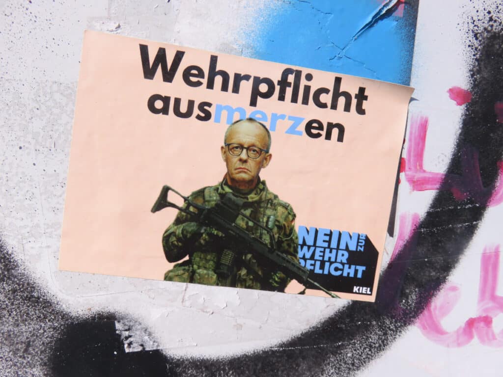 Heute sind es vor allem die alten Menschen wie ich, die auf die Straße gehen. Aber es gibt auch ermutigende Zeichen von den Jüngeren: Schüler organisieren Schulstreiks gegen die drohende Wehrpflicht; den unten stehenden Aufkleber fand ich in der Nähe der Kieler Waldorfschule.